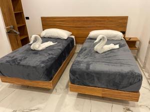 Chaque chambre climatisée dispose d’une télévision à écran plat avec services de streaming, d’une salle de bains privative équipée d’une douche et d’un sèche-cheveux, ainsi que d’installations culinaires comprenant une plaque de cuisson, un réfrigérateur, un four et des ustensiles de cuisine. Certaines chambres offrent des terrasses ou balcons avec vue sur la piscine, le jardin, la silhouette urbaine ou la cour intérieure. Des chambres familiales sont proposées aux côtés de logements non-fumeurs et dotés d’une isolation acoustique pour garantir un séjour plus paisible.