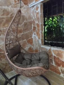 Cet appartement spacieux et indépendant se compose d’une chambre ainsi que de deux salles de bains équipées de shampooing, après-shampooing et sèche-cheveux. L’espace séjour dispose d’une climatisation, d’une télévision à écran plat, d’un coin repas et d’une machine à café. La kitchenette entièrement équipée comprend des ustensiles de cuisine, un four ainsi qu’un réfrigérateur permettant aux hôtes de préparer leurs repas. Deux lits sont mis à disposition avec le linge de lit et les serviettes pour plus de confort. L’appartement s’ouvre sur une terrasse extérieure offrant une vue sur le jardin.