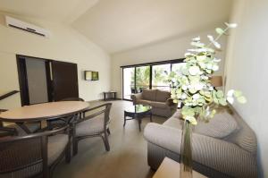 Les hébergements se déclinent en chambres standards avec un lit king-size ou deux lits doubles, ainsi qu’en suites master comprenant plusieurs chambres adaptées pour accueillir jusqu’à six adultes. Chaque chambre dispose de la climatisation, d’une télévision par streaming, d’un service téléphonique (en supplément), d’un coffre-fort, d’un accès Wi-Fi et d’une salle de bains privative équipée de produits pour la douche. Certaines chambres offrent des vues sur le jardin, la piscine, la lagune ou les bâtiments du voisinage et bénéficient également de kitchenettes dotées d’un micro-ondes et de cafetières.