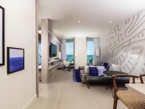 Отель SLS Cancun расположен в закрытом жилом комплексе Novo Cancun и обеспечивает прямой выход к 250 метрам пляжа с частным пляжным клубом. В состав комплекса входит поле для гольфа на 18 лунок, разработанное Томом Вайскопфом, а также частная марина с 175 причалами для лодок. Для гостей доступны более 100 магазинов и бутиков, разнообразные рестораны и развлекательные заведения, включая 16 кинотеатров.
