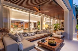 Cette spacieuse villa se compose de cinq chambres et cinq salles de bains équipées de baignoires et de douches. Les clients accèdent par une entrée privée à un intérieur comprenant une cuisine entièrement équipée avec plaque de cuisson, réfrigérateur, lave-vaisselle, four et ustensiles culinaires. Le salon est doté d’une télévision à écran plat avec services en streaming ainsi qu’un accès à la télévision par satellite. Un espace repas mène à une terrasse donnant sur la piscine où il est possible de prendre les repas ou de se détendre en plein air. Parmi les autres conforts figurent la climatisation individuelle, des couvertures électriques sur les lits garnis d’oreillers en plume ou synthétiques, des chaussons ainsi qu’un service ménage quotidien.